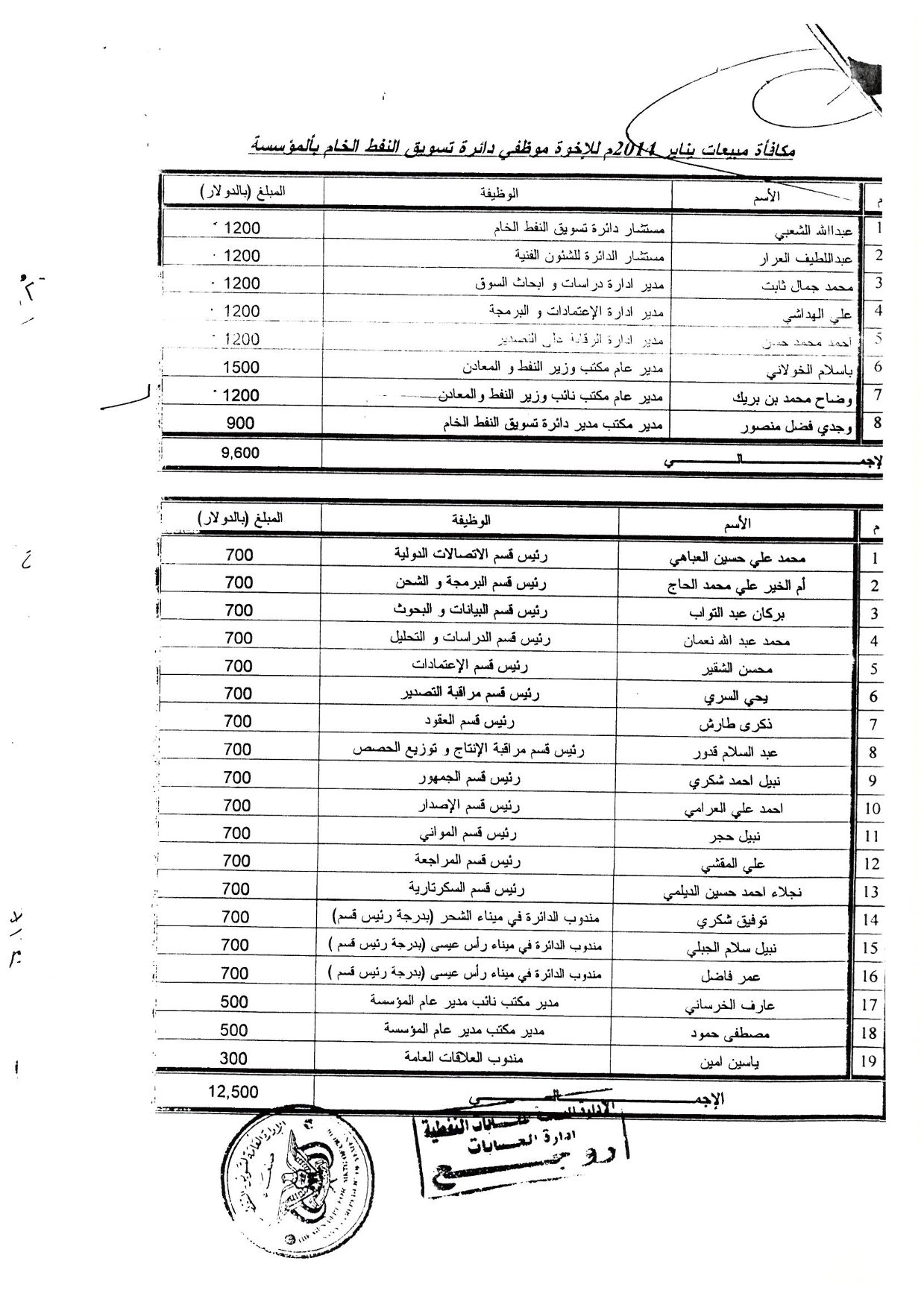 بالوثائق .. نصف مليون دولار مكافآت في وزارة النفط