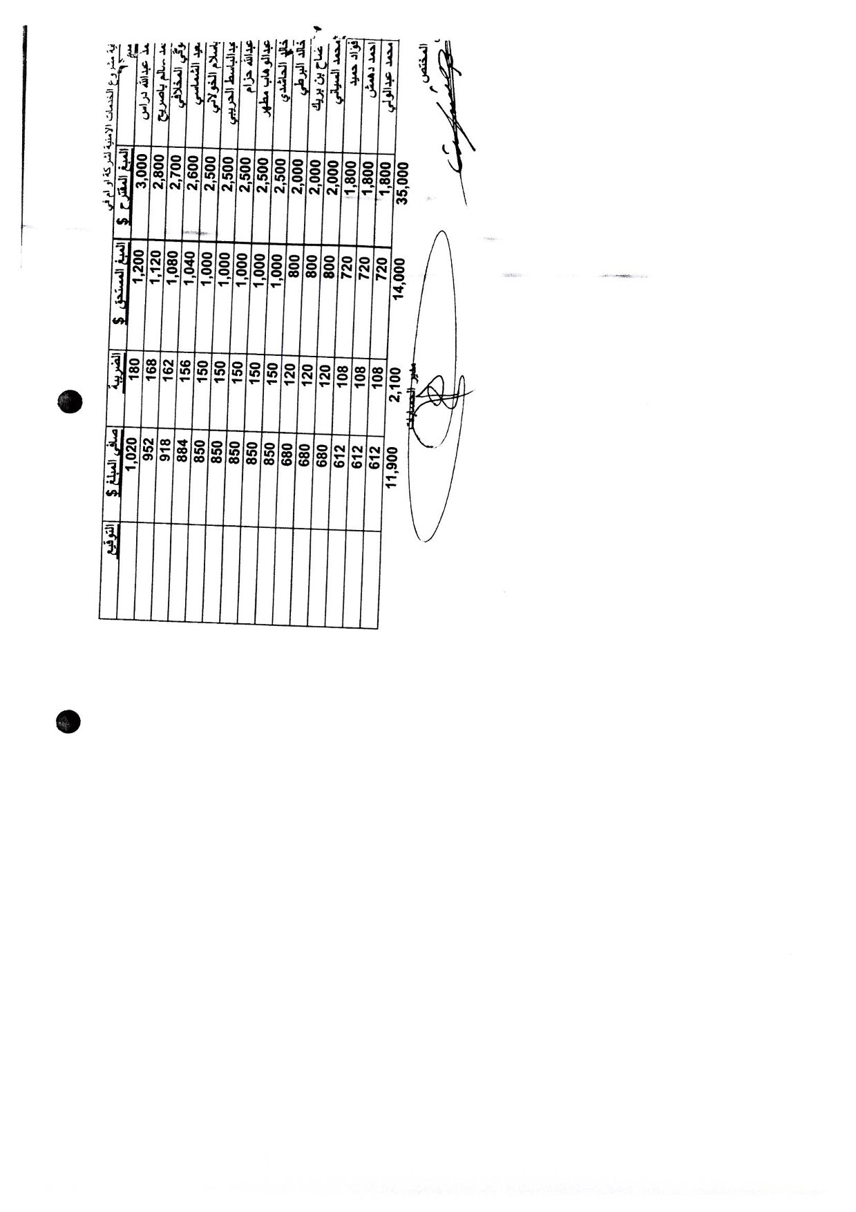 1. صرف مبلغ 19.400 دولار لدفع مكافآت مقابل إعداد آلية لصرف السيارات المسترجعة من الشركات النفطية.