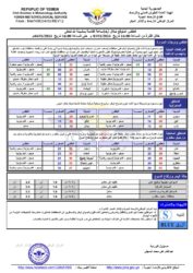 المرتفعات الجبلية :- أجواء صحوة باردة اثناء الليل والصباح الباكر على محافظات (صعده، عمران، صنعاء، ذمار والبيضاء) وباردة نسبياً إلى باردة على مرتفعات محافظات (اب، الضالع، تعز، لحج، ابين، شبوه وصولاً إلى هضبة حضرموت) وقد تتكون الشابورة المائية أو الضباب على اجزاء من محافظات (لحج، تعز، اب، ريمه، المحويت وحجه)، غائمة جزئياً إلى غائمة نهاراً مع إحتمال هطول أمطار خفيفة إلى متوسطة على أجزاء من المرتفعات الغربية والجنوبية الغربية.