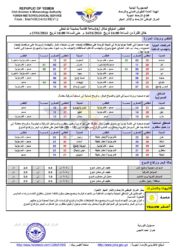 المناطق الساحلية :- أجواء صحوة الى غائمة جزئياً مع احتمال هطول أمطار متفرقة على أجزاء من أرخبيل سقطرى والسواحل الشرقية والجنوبية، والرياح معتدلة إلى نشطة جداً على السواحل الغربية ومدخل باب المندب تتراوح سرعتها ما بين (16 – 26) عقدة تعمل على اضطراب البحر وارتفاع الموج.