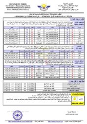 المناطق الصحراوية :- أجواء صحوة شديدة الحرارة نهاراً حيث تتراوح درجات الحرارة العظمى ما بين (38 – 43 درجة مئوية) مع امكانية هطول امطار متفرقة على أجزاء من صحارى (المهرة، حضرموت، مأرب وشبوة )، والرياح نشطة السرعة مثيرة للأتربة والرمال.