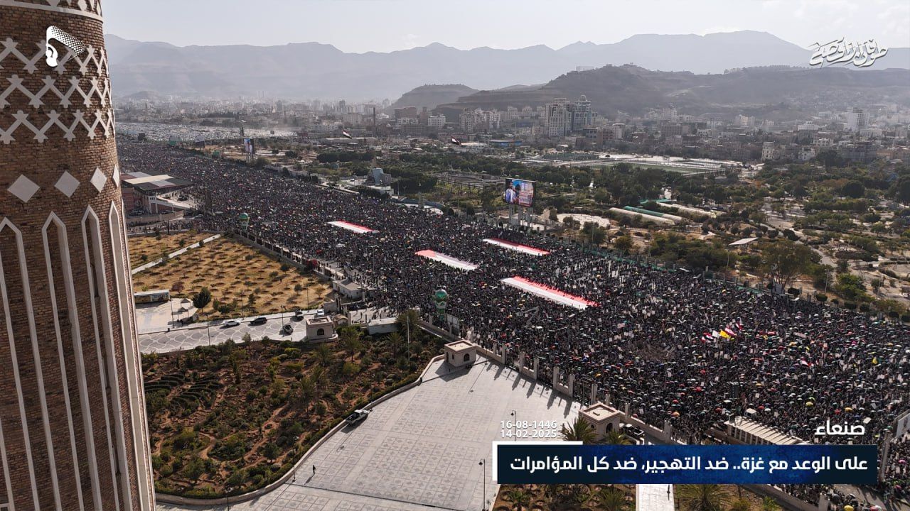 In a statement during the march titled “On the Promise with Gaza… Against Displacement, Against All Conspiracies,” which took place at Al-Sabeen Square, Major General al-Atefi confirmed their steadfastness on the “stance and promise made to the Palestinian people on behalf of our leader that we are with you and alongside you in confronting all conspiracies, and we will never abandon or forsake the Palestinian people, no matter the cost, relying on God Almighty and confident in His promise.”